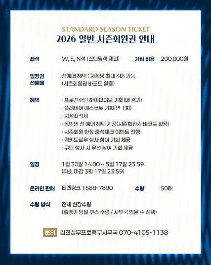 한편, 김천상무의 2026시즌 홈 개막전은 2월 28일 포항스틸러스와의 ‘하나은행 K리그1 2026’ 1R 경기다.