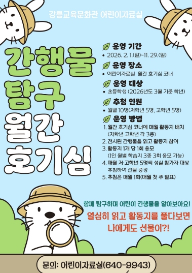![]() 강릉교육문화관, 어린이 간행물 탐구 ‘월간 호기심’ 운영 |