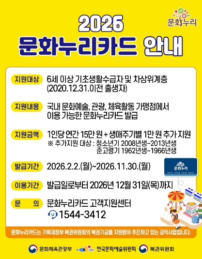 ![]() 2026 문화누리카드 안내 포스터 |
