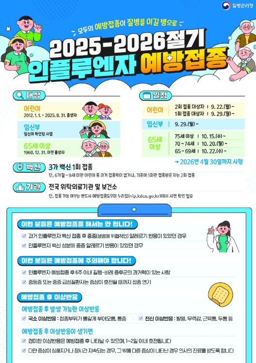 울산 남구는 지정의료기관 144곳에서 인플루엔자 예방접종이 가능하며 세부 사항은 예방접종도우미 누리집에서 확인할 수 있다.