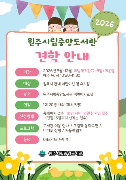 이훈주 도서관장은 “견학 프로그램이 도서관을 친숙하고 즐거운 공간으로 인식하고, 책을 반가운 친구로 느끼는 계기가 되길 바란다”라며, “어린이들이 책과 친해질 수 있도록 다양한 프로그램을 제공하겠다”라고 말했다.
