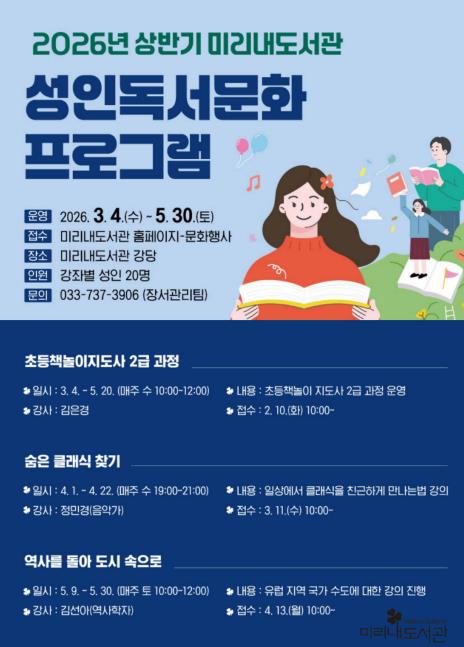 민병인 도서관장은 “음악과 역사 등 폭넓은 주제의 프로그램을 지속적으로 운영해 시민들의 문화적 욕구 충족과 삶의 질 향상을 위해 최선을 다하겠다”라고 말했다.