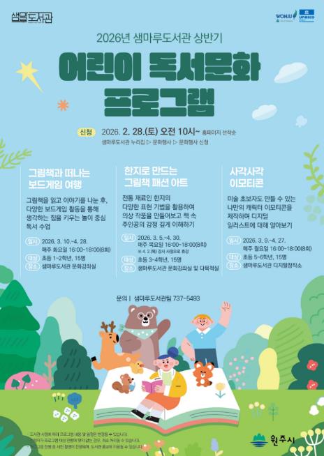 민병인 도서관장은 “새로운 학기를 맞아 진행되는 도서관 프로그램을 통해 어린이들이 창의력을 키우고 독서와 친해지는 시간을 보내길 바란다”라고 말했다.