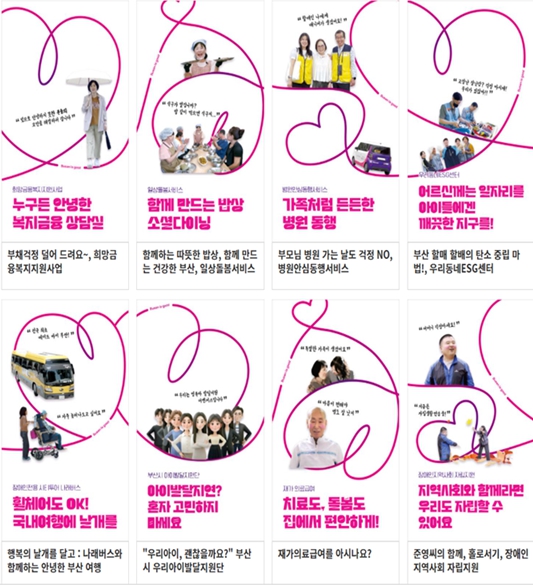 한편, '안녕한 부산' 브랜드 로고는 '안녕'과 '하트' 모양이 이어져 이웃과 연결되는 복지 공동체를 의미한다.