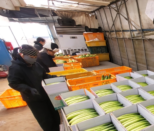 ![]() 1. 천안 하늘그린오이 재배 농가가 수확한 오이를 상자에 담고 있다. |