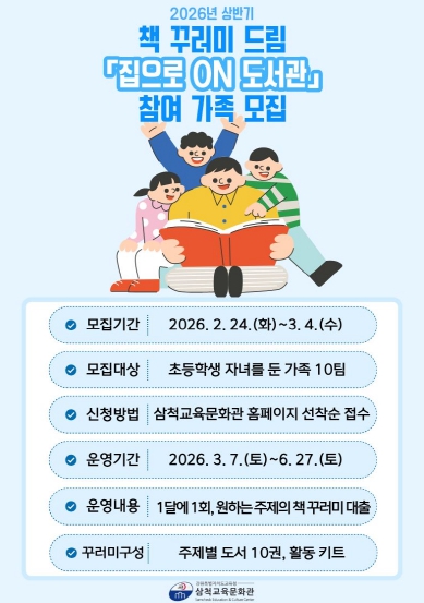 ![]() 삼척교육문화관, 2026년 책 꾸러미 드림 ‘집으로 온(ON) 도서관’ 운영 |