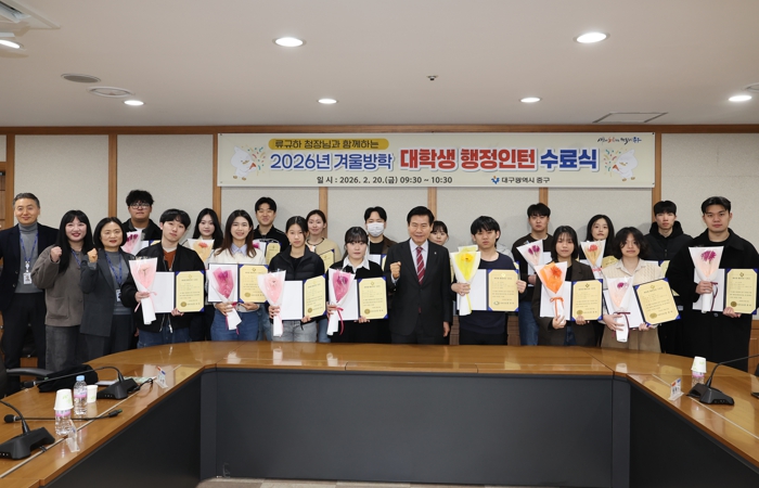 류규하 중구청장은 “짧은 기간이지만 행정 현장을 직접 경험한 시간이 앞으로의 진로 선택과 사회 진출에 소중한 밑거름이 되길 바란다”며 “참신한 아이디어가 구정 발전으로 이어질 수 있도록 적극 검토하겠다”고 말했다.