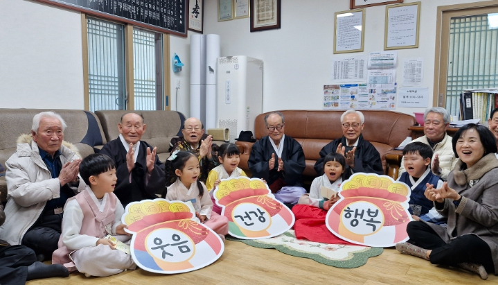 특히 푸른들어린이집 원아들이 지역 어르신들께 세배 인사를 하며, 세대 간의 따뜻한 정을 나눴다.