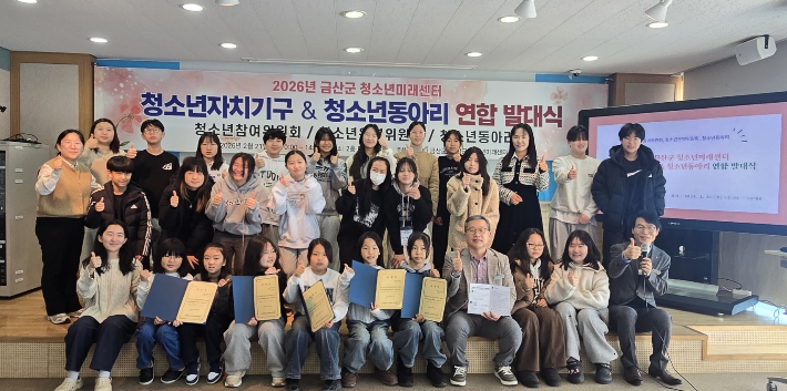 이날 발대식에는 제13기 청소년운영위원, 제12기 금산군 청소년참여위원 및 3개 청소년동아리 연합 회원 등 40여 명이 참석했으며 위촉장 수여와 연간 활동 계획 공유 등이 진행됐다.
