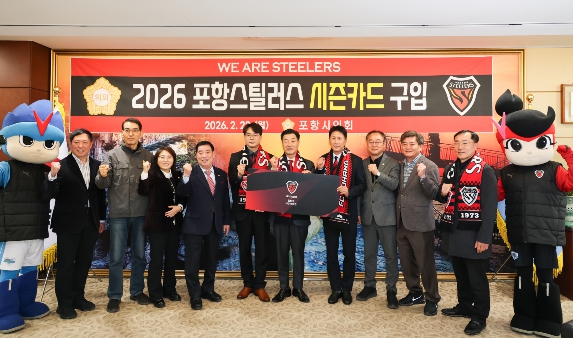 시의회는 23일 오전 의장실에서 김일만 의장을 비롯한 이재진 부의장, 상임·특별위원장과 포항스틸러스 김상락 사장, 이종하 단장, 박태하 감독 등이 참석한 가운데 ‘2026 포항스틸러스 시즌카드’ 구입행사를 열었다.