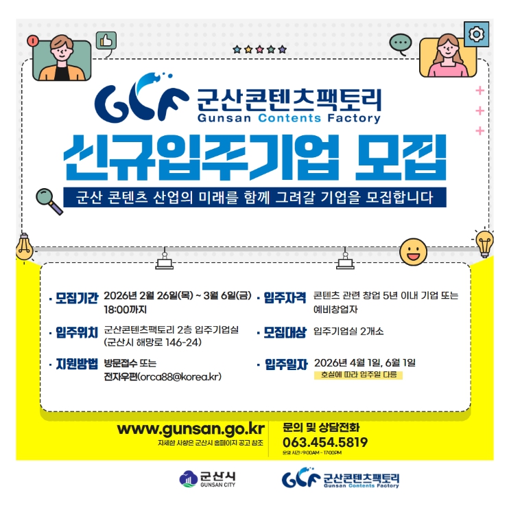 ![]() 군산시, 군산콘텐츠팩토리 신규 입주기업 모집 |