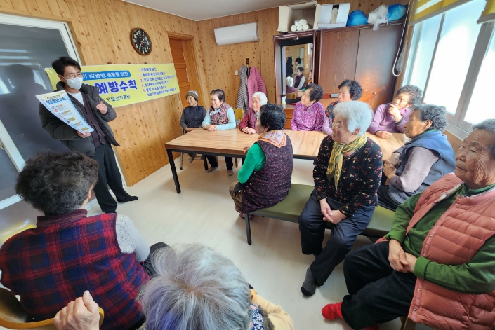 ![]() 곡성군보건의료원 관계자가 마을 경로당에 방문해 감염병 예방 교육을 추진하고 있다. |