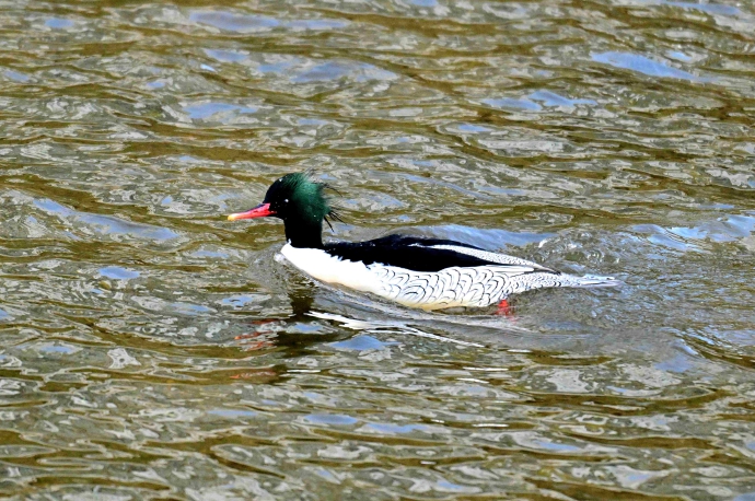 ![]() 성동구와 사회적협동조합 한강은 최근 중랑천-청계천 합류부에서 호사비오리 수컷 1개체와 암컷 2개체가 먹이활동과 휴식을 하는 모습을 확인했다.(사진은 중랑천-청계천 합류부에서 발견된 호사비오리 수컷) |