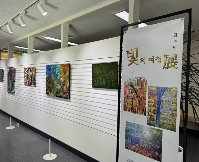 김수민 작가는 “작품 ‘빌딩숲’은 현대인이 살아가는 답답한 도시의 구조와 복잡함 속에서 질서 정연하면서도 찰나의 아름다음을 동시에 표현했다”며 “도서관 이용자들이 잠시 걸음을 멈추고 자신의 내면을 돌아보는 시간을 갖기 바란다”고 전했다.