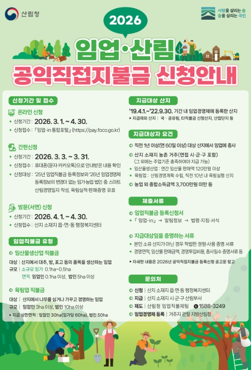![]() 2026년 임업·산림 공익직접직불금 신청 안내 포스터 |