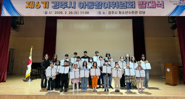 ![]() 경주시는 2월 28일 청소년수련관 강당에서 ‘제6기 경주시 아동참여위원회 발대식’을 개최하고 아동참여위원 31명에게 위촉장을 수여했다 |