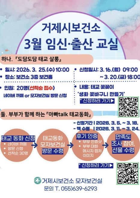 ![]() 거제시보건소, 2026년 '도담도담 임신·출산교실' 운영 시작 |