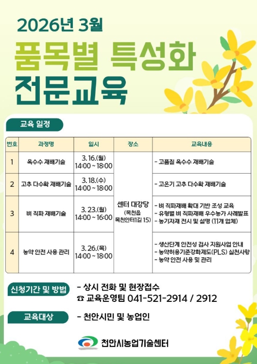 ![]() 1. 천안시농업기술센터 ‘품목별 특성화 전문교육 일정표’ |