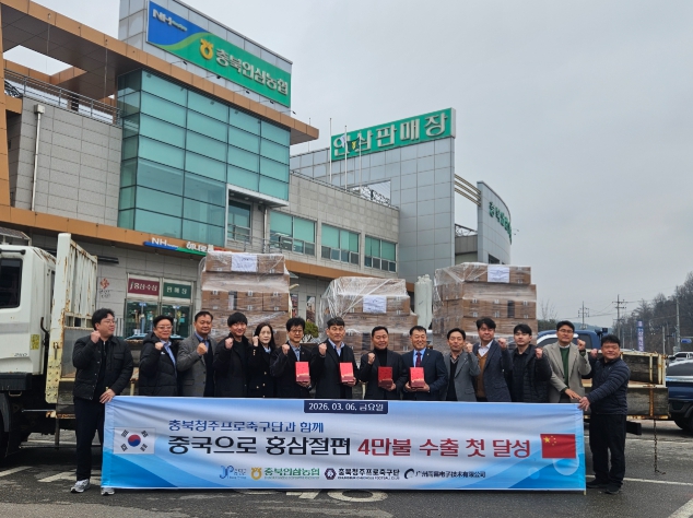 소진호 충북인삼농협 조합장은 “이번 홍삼절편 수출은 증평 인삼 가공제품이 중국 시장에 첫 발을 내딛었다는 점에서 의미가 크다”며 “앞으로도 현지 소비 트렌드에 맞는 다양한 제품으로 해외 시장을 넓혀 나가겠다”고 말했다.