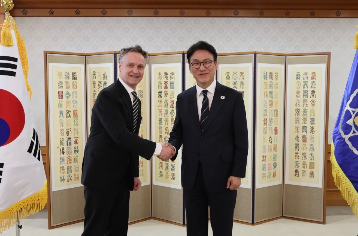 ![]() 김민석 국무총리가 9일 세종대로 정부서울청사에서 패트릭 존슨 일라이릴리앤컴퍼니 인터내셔널사업 총괄 대표를 접견, 인사 및 환담을 나누고 있다. |