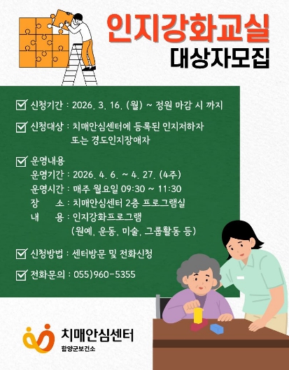 ![]() 함양군보건소 치매안심센터, 인지강화교실 참여자 모집 |