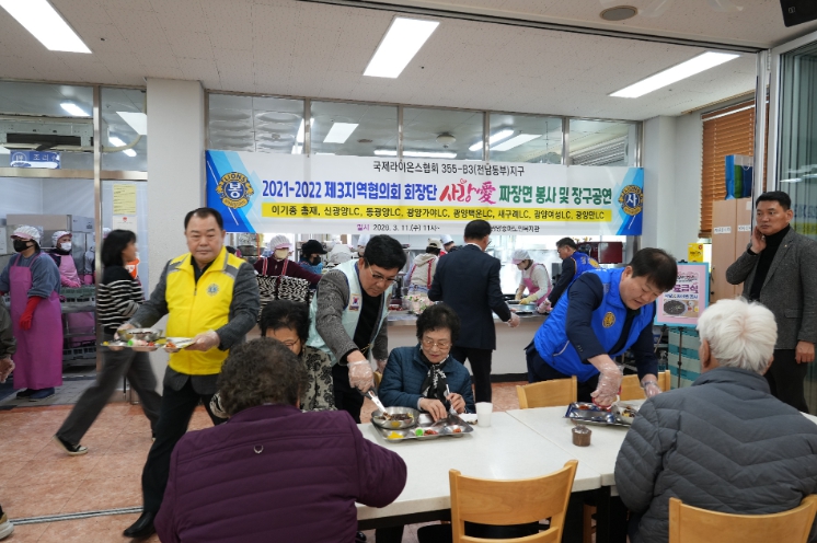 이번 봉사활동에는 제25대 총재 이기종 총재를 비롯한 전남동부지구 회장단이 참여해 직접 300인분의 짜장면을 조리해 중마노인복지관을 이용하는 어르신들에게 제공하며 따뜻한 식사를 대접했다.