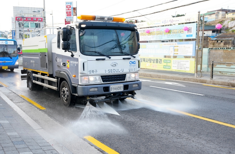 ![]() 성북구가 봄맞이 대청소를 맞아 물청소 차량을 투입했다 |