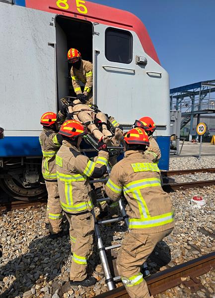 훈련은 열차 사고 상황을 가정해 초기 대응부터 인명구조, 화재진압까지 실전과 같은 방식으로 진행됐다.