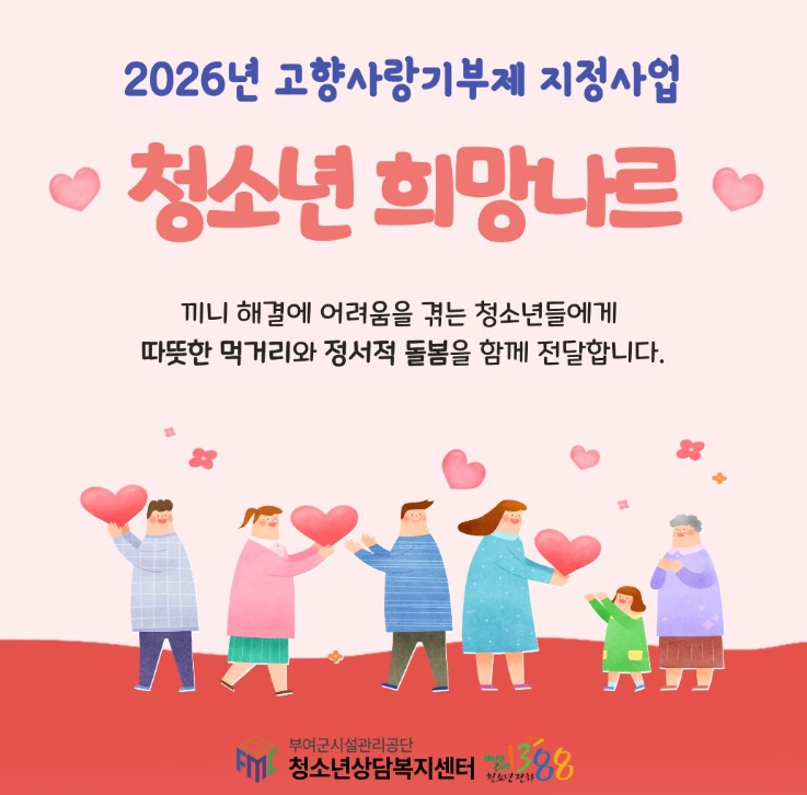 특히 이번 사업은 부여군 고향사랑기부제 아이디어 발굴을 통해 선정된 사업으로 고향사랑기부제를 통해 조성된 기부금을 활용하여 지역사회와 함께 청소년을 지원하는 지역 기반 복지사업으로 추진된다.