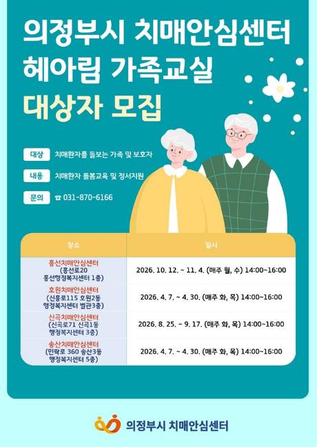 ![]() 의정부시 치매안심센터, 치매환자 가족 지지 프로그램 ‘기억돌봄교실’ 운영 |