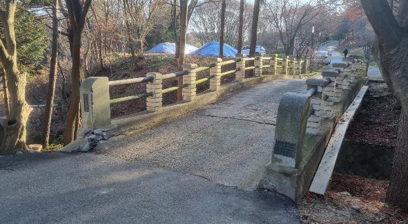 기존 3.1m에 불과했던 교량 폭을 4m로 확장하여 차량 진입 및 교행 여건을 개선하고, 산림욕장 인근 노후 도로 구간을 콘크리트로 재포장하여 주행 쾌적성을 높일 계획이다.