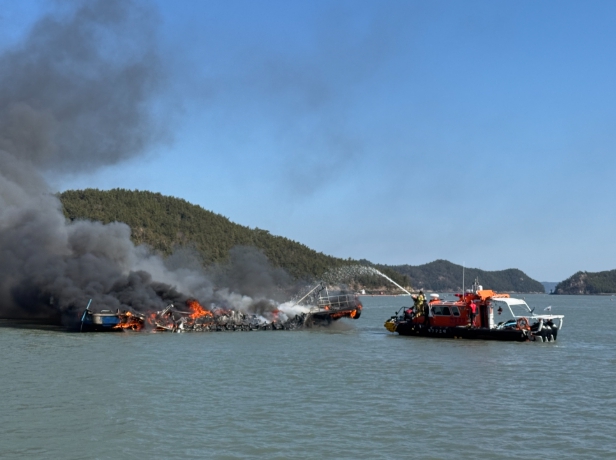 ![]() 화재 진화 중인 완도해경의 모습 |
