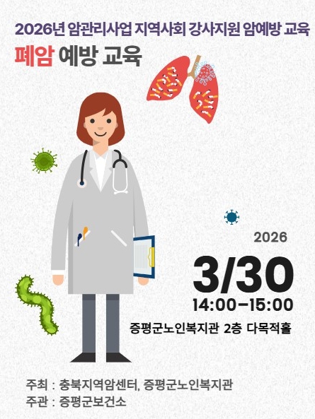교육은 충북지역암센터의 강사 지원으로 진행되며, 충북대학교 겸임교수 김지현 교수가 강사로 나선다.