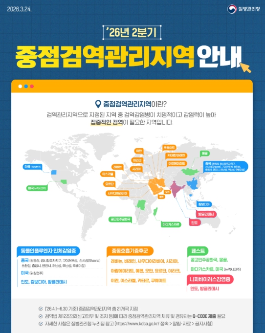 ![]() 2026년 2분기 중점검역관리지역 현황 |