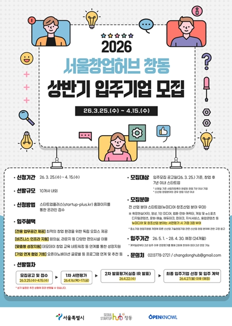 ![]() '2026 서울창업허브 창동 상반기 입주기업 모집' 포스터 |