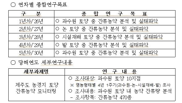 ![]() 제주도 농경지 토양 잔류농약 모니터링 |