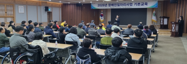 ![]() 장애인일자리사업 참여자 교육 진행 모습 |