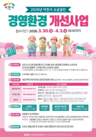 ![]() 이천시, 소상공인 경영환경개선사업 접수 시작… 지원 규모 확대 |