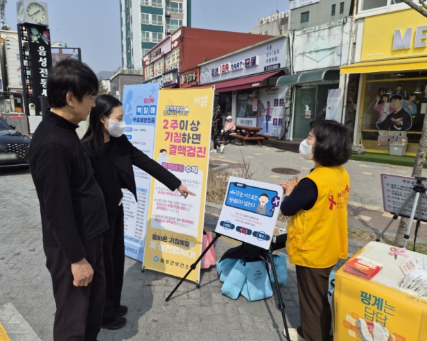 이번 캠페인은 음성군보건소와 대한에이즈예방협회 충북지부가 함께했다. 이날 △성 매개 감염병 무료 익명 검사 △65세 이상 어르신 무료 결핵검진 △2주이상 기침하면 무료 결핵검진 △대상포진‧백일해‧폐렴구균 무료 예방접종 안내 등을 중심으로 진행됐다.