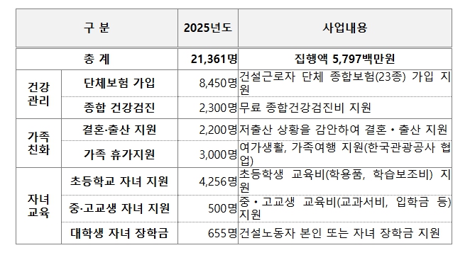 ![]() 2025년 건설 노동자 지원사업 현황 |