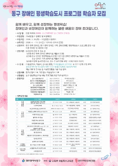 이외에도 동구는 장애인의 생애주기와 다양한 학습 욕구를 반영한 프로그램을 지속적으로 발굴·운영하여 학습 참여 기회를 확대하고, 지역 내 유관기관과 협력을 기반으로 지속 가능한 장애인 평생학습 생태계를 구축해 나갈 예정이다.