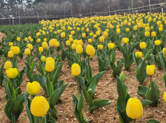 이번 튤립은 지난해 11월 구근을 식재해 조성한 것으로, 겨울을 지나며 생육을 이어온 끝에 최근 들어 노란색과 빨간색 꽃이 차례로 피어나고 있다.