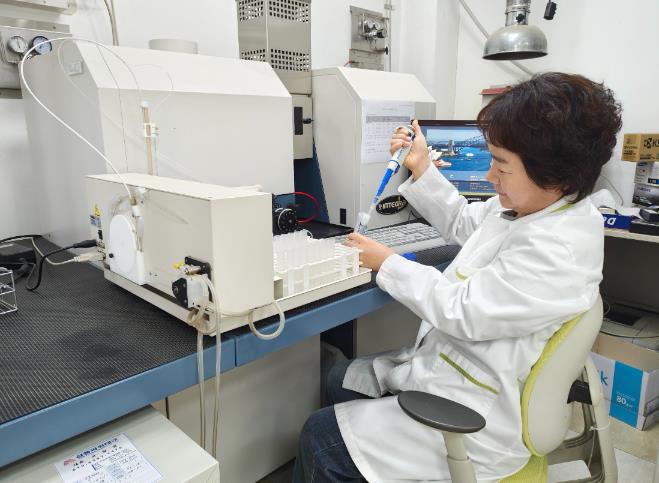 ![]() 밀양시농업기술센터 토양검정 담당 직원이 토양 성분을 분석하고 있다. |