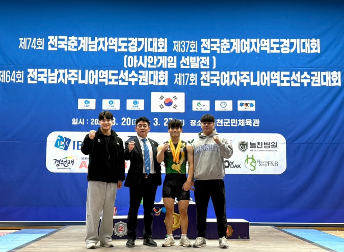 먼저 김요한(65kg) 선수는 ‘제64회 전국남자주니어역도선수권대회’에서 용상 1위(160kg), 인상 1위(115kg)를 기록하며 합계 1위(275kg)의 성적을 달성하며 금메달 3개를 따내며 3관왕을 차지했다.