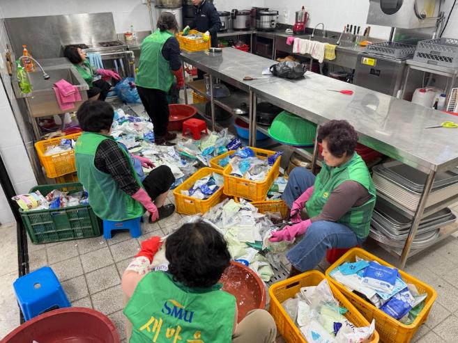 이날 새마을부녀회는 관내에서 수거된 아이스팩 4,000여 개를 일일이 분류해, 이 중 재사용이 가능한 젤 타입 아이스팩 700여 개를 선별했다.