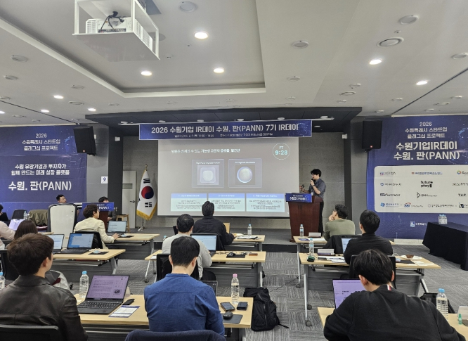 ![]() 수원시가 수원기업 아이알(IR)데이 수원.판(PANN) 7기를 열고 있다. |