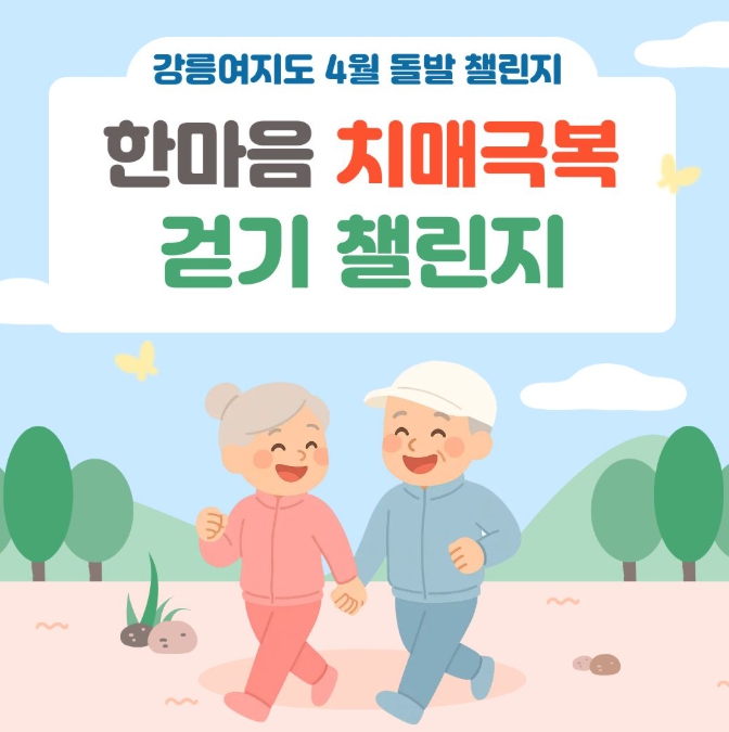 ‘한마음 치매극복 걷기 챌린지’는 10일부터 16일까지 진행되며, 워크온 앱의 ‘강릉여지도 걷기 커뮤니티’에 참여해 7일 동안 총 5만 보 달성을 목표로 걸으면서 ‘기억’이나 ‘예방’처럼 치매 관련 단어가 들어간 물건을 찾아 사진을 촬영해 인증하면 된다.