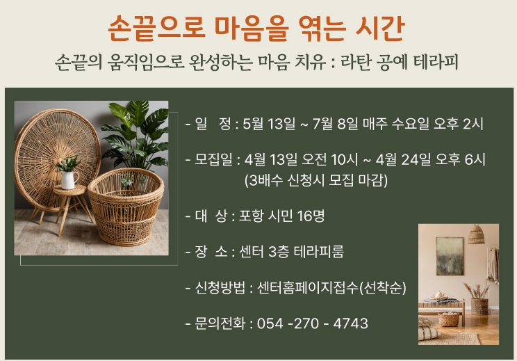![]() 공예 테라피 참여자 모집 |