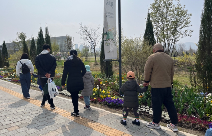 ![]() 4월 11일, 국립세종수목원에서 세종시 거주 유아 가족들이 생태프로그램“항기체험 대작전”에 참여하고 있다. |