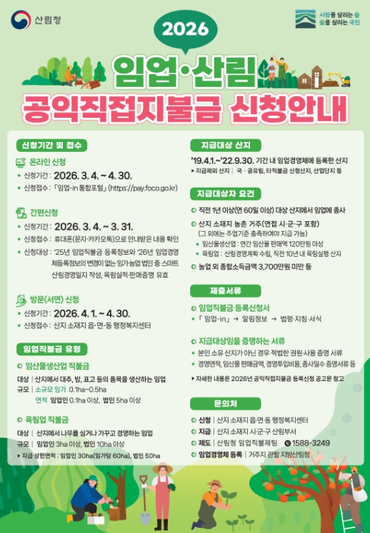 ![]() 2026년 임업·산림 공익직불금 대면 신청 접수 |